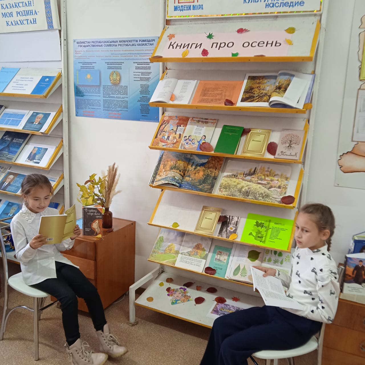 Осень - прекрасное время года. Своими волшебными красками раскрашивает всё вокруг. Поэты воспевали осень, красоту природы, золото листвы, прохладу осенних дней. Очень красивые стихи про осень у классиков: Абая Кунанбаева, Александра Пушкина, Сергея Есенина и многих других поэтов. Классики в стихах про осень передавали свое отношение к этому времени года. Осени посвящена книжная выставка. Были приглашены учащиеся для чтения стихов.